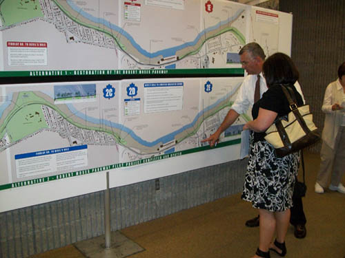 For those who didn't download the Robert Moses Parkway North PDFs from our website, Monday's State Parks-sponsored open house was an opportunity to see the concepts for the first time. And for those who did access the electronic files, Monday's event was a chance to ask questions about the six designs, which range from complete parkway restoration to complete removal.