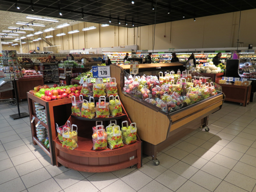 Pods already are in place for some hardier, faster-moving items, like apples, which will not be kept cold. These portable stands can be moved to rearrange the produce lineup or showcase new and seasonal items.