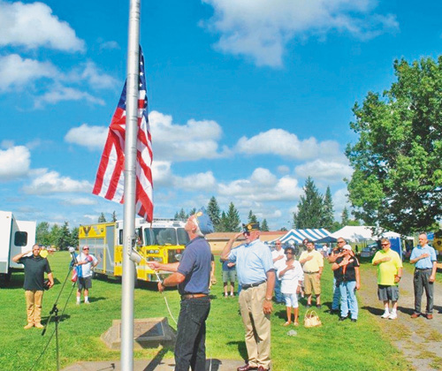 After the flag-raising ceremony, the signs that will be placed at the Niagara Falls Boulevard and Lockport Road ends of Walmore Road naming that section of the road the Spec. Alan N. Dikcis Memorial Highway were unveiled.