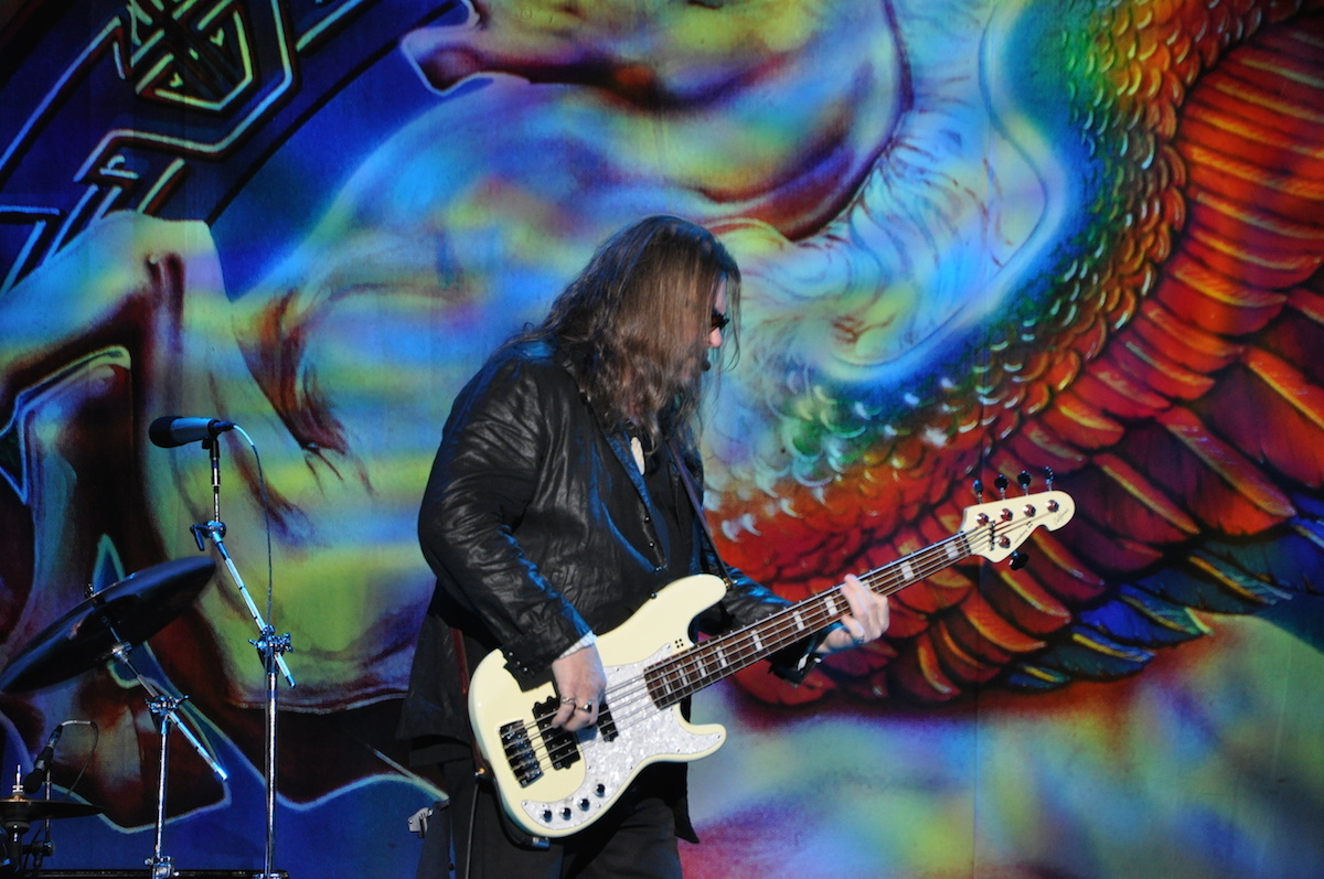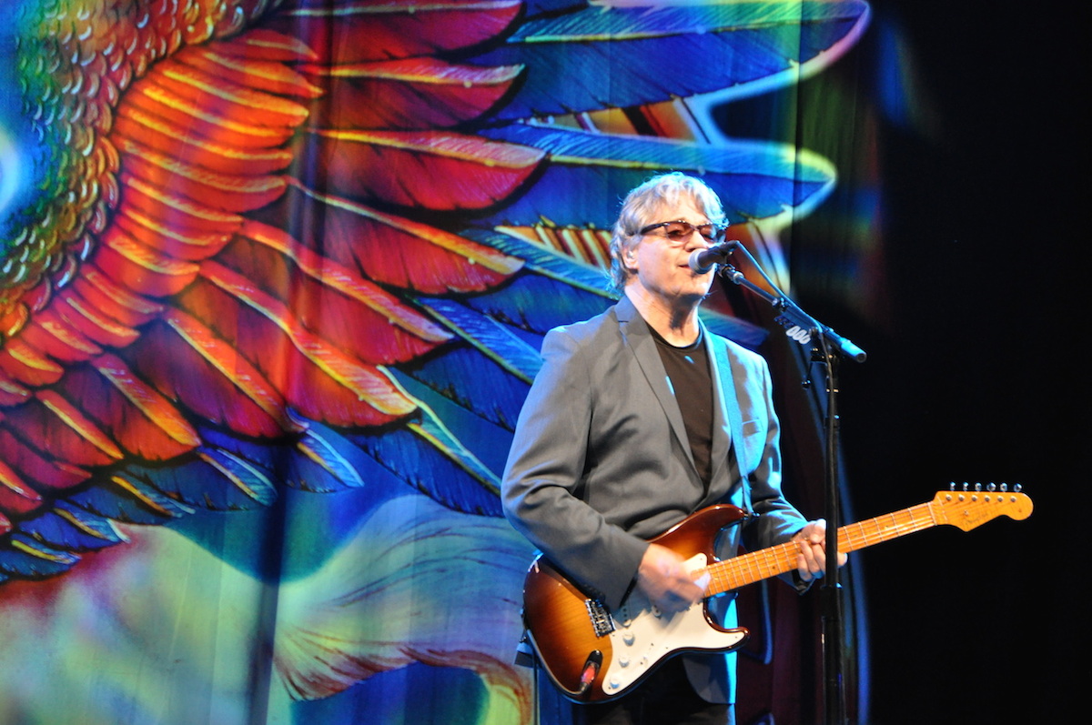 The backdrop of the stage was a '70s-inspired, retro/futuristic image of a giant Pegasus. A rainbow of lights changed color throughout different parts of the show. Miller was front and center, flanked by a backup singer to his left and the bass player to his right.