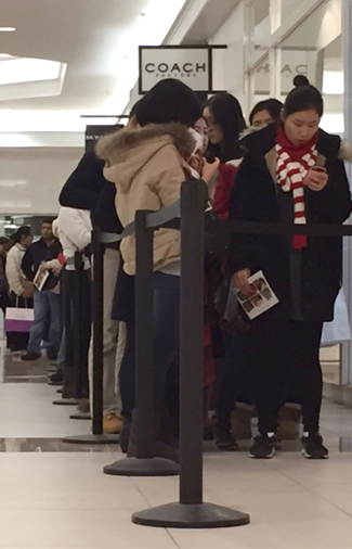 Of course, some shoppers preferred to wait out the rush, such as Ontario shopper Nicky (no last name given), who visited the mall with her goddaughter. The two were content to wait in recliners for the line to die down at Michael Kors, where the number of customers allowed inside at the same time was limited.