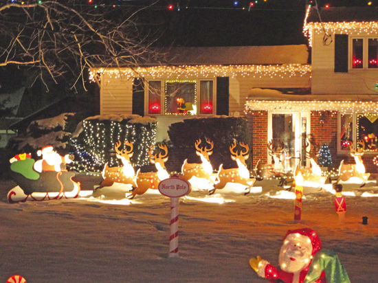 This is the 12th year Santa has stopped by the home of Paul DePlato and his wife, Jan. The couple moved to Bergholz in 1977 and began setting up impressive light displays for the holidays. After Santa noticed, he gave them a call and asked if they'd like for him to stop by for a couple of nights each year. Now, the DePlatos and Santa see about 130 kids stop by every December, sometimes with a line extending down the driveway.