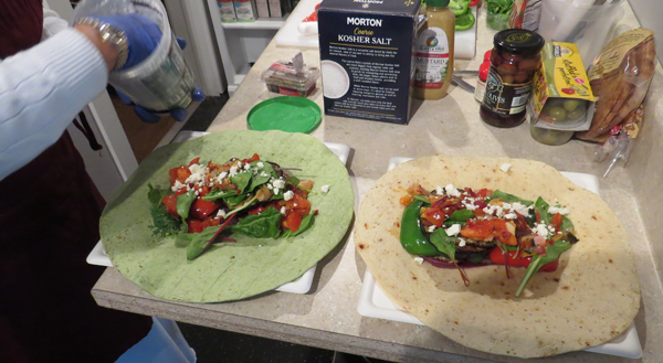 As I watched her cut, season and cook the vegetables, the aroma of the non-meat, non-fried, not-chocolate-covered items filled the room. As Piat "layered the flavors" and started assembling her "Italian wrap," I knew it would be just a matter of seconds before I was asked to take a bite.