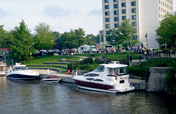 Patrons at the T-NT Gateway Market wait for their food at Lloyd III. The market has been drawing people to the canal with food trucks and artisans. (Photo by Jill Keppeler)