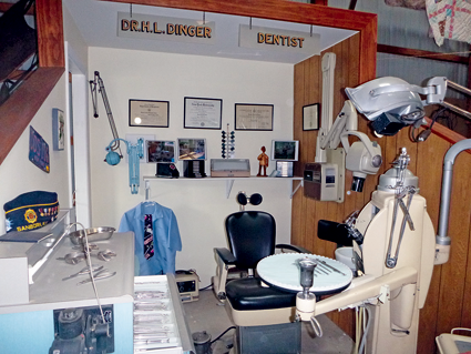 Nearby, another prized exhibit is a large mock-up of the office of Dr. H.L. Dinger, a local dentist. Artifacts include everything from a letter accepting Dinger's application to the NY University College of Dentistry to a small, comical statue of a dentist, diplomas, tools and a dentist's chair.
