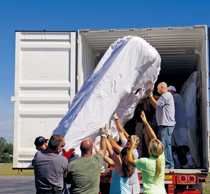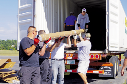 Approximately 20 volunteers unloaded numerous pieces of equipment from a large trailer Sept. 11 at Kaegebein Elementary School in the final stages of a long effort to upgrade the school's playground.