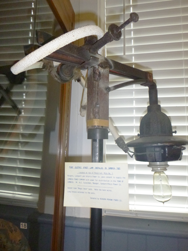 Another display showcases the history of nearby Camp Windy Meadows, and with it, the Girl Scouts, with Scout sheet music, books and uniforms and photos of the site (which still welcomes Scouts each year). Nearby stands the first electric street lamp in Cambria, from 1920, and a farm implements display that Reinbird said is popular with visiting schoolchildren.