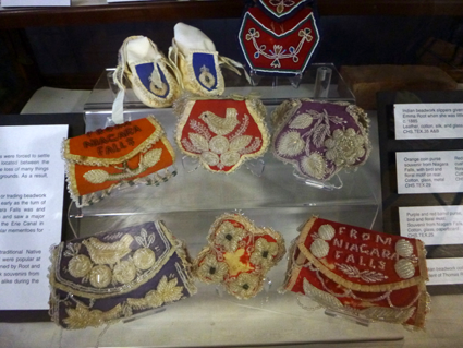 Other displays deal with churches and community organizations, such as fire departments, and local wineries. Yet another case holds a variety of smaller displays, such as examples of intricate Tuscarora beadwork; information on Jonathan R. Bass of Cambria, who toured with sideshows during the 1880s as "The Living Ossified Man;" and a display on Lafler's General Store, which was located on North Ridge Road.