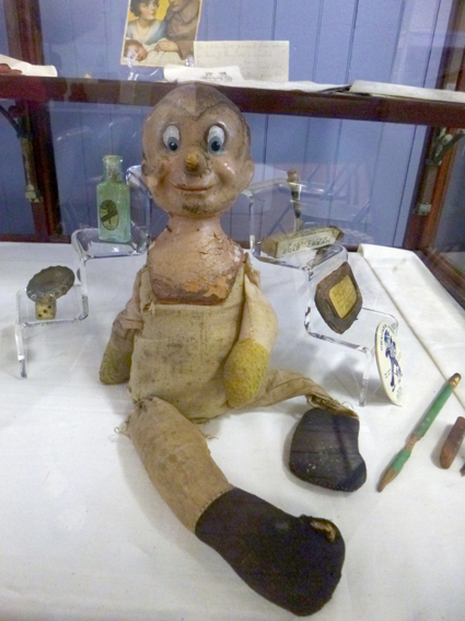 One of Reinbird's favorites is "If Walls Could Talk," a collection of items found within the walls of older Cambria homes. It includes letters, trinkets, a chipped-but-still-smiling old Pinocchio doll ... and pamphlets on venereal disease from the World War I era, aimed at soldiers.