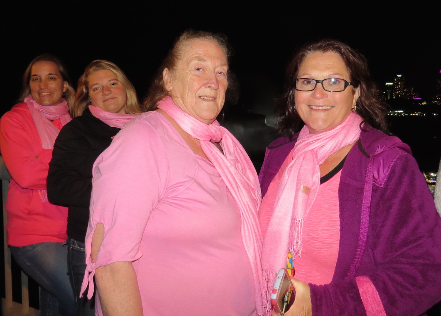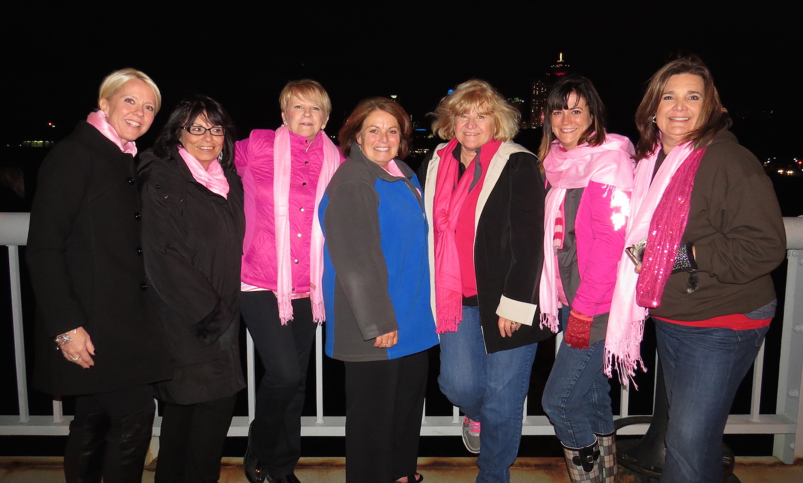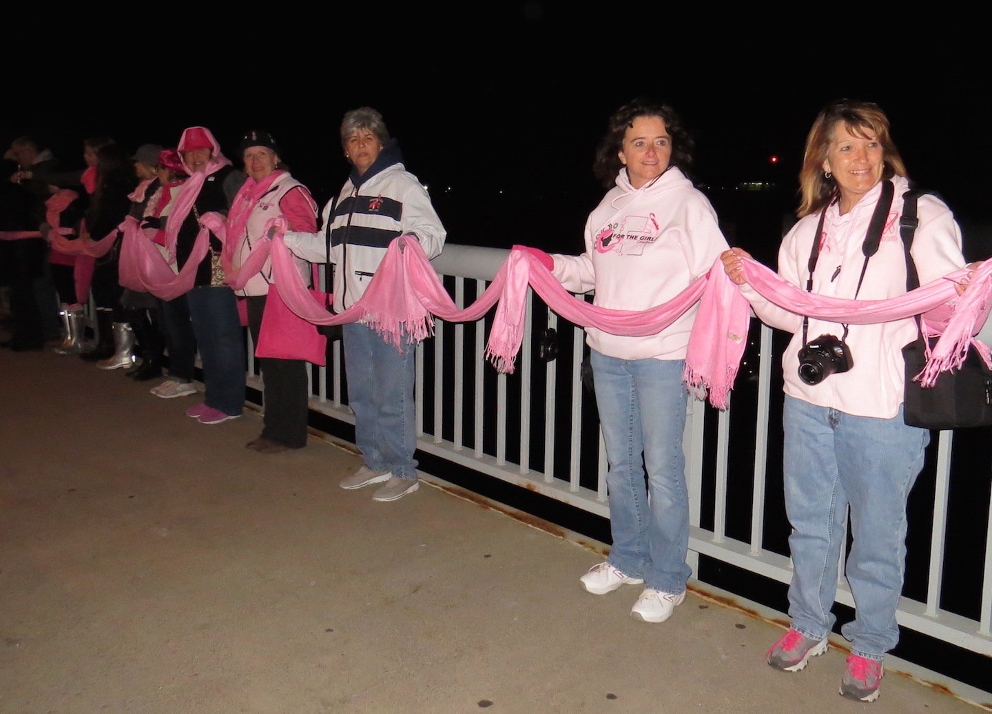 At a quarter to 8 p.m. Friday, about 100 people - mostly women, and many breast cancer survivors - joined together to form a "Living Ribbon" across the Rainbow Bridge in Niagara Falls. Participating in Hard Rock Café Niagara Falls USA's PINKTOBER celebration, these pink pashmina-clad people linked arms in the battle against breast cancer, and to show support for those fighting the loathsome disease.