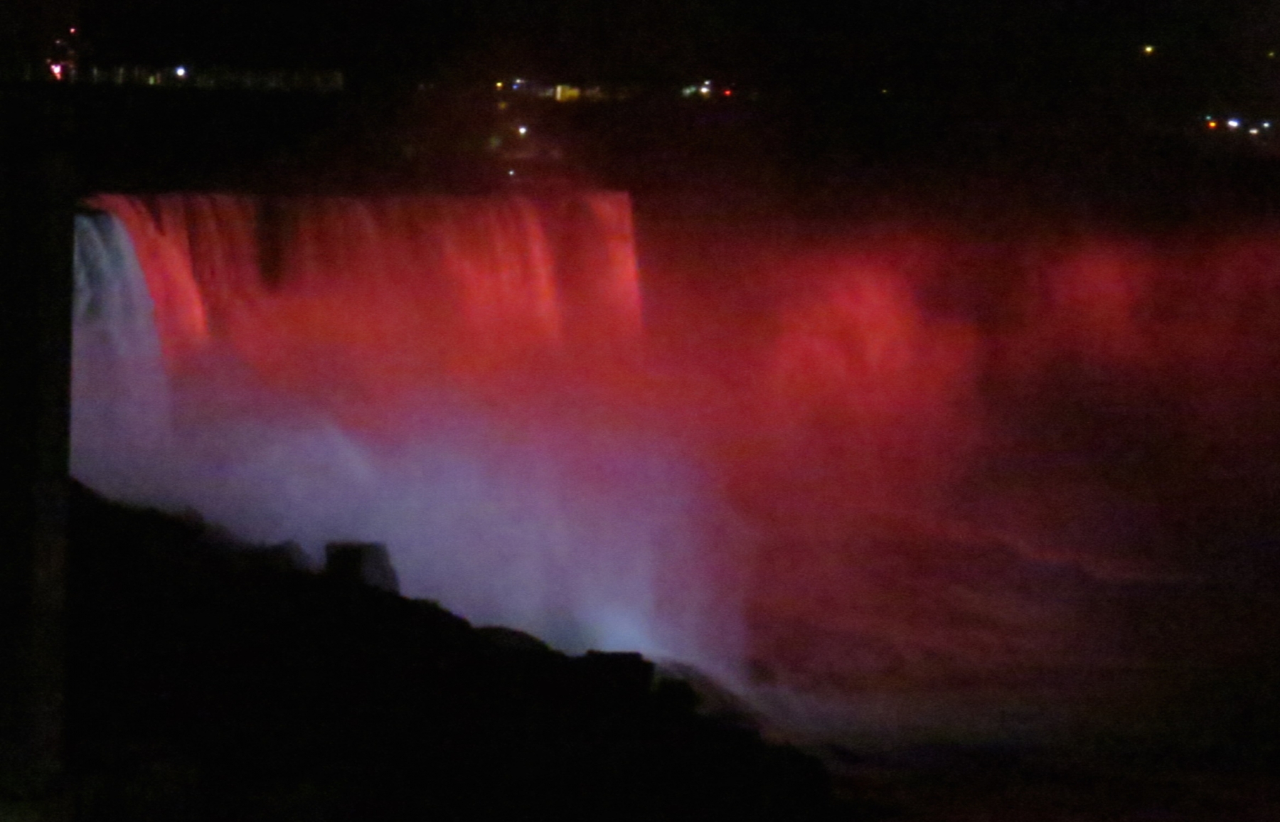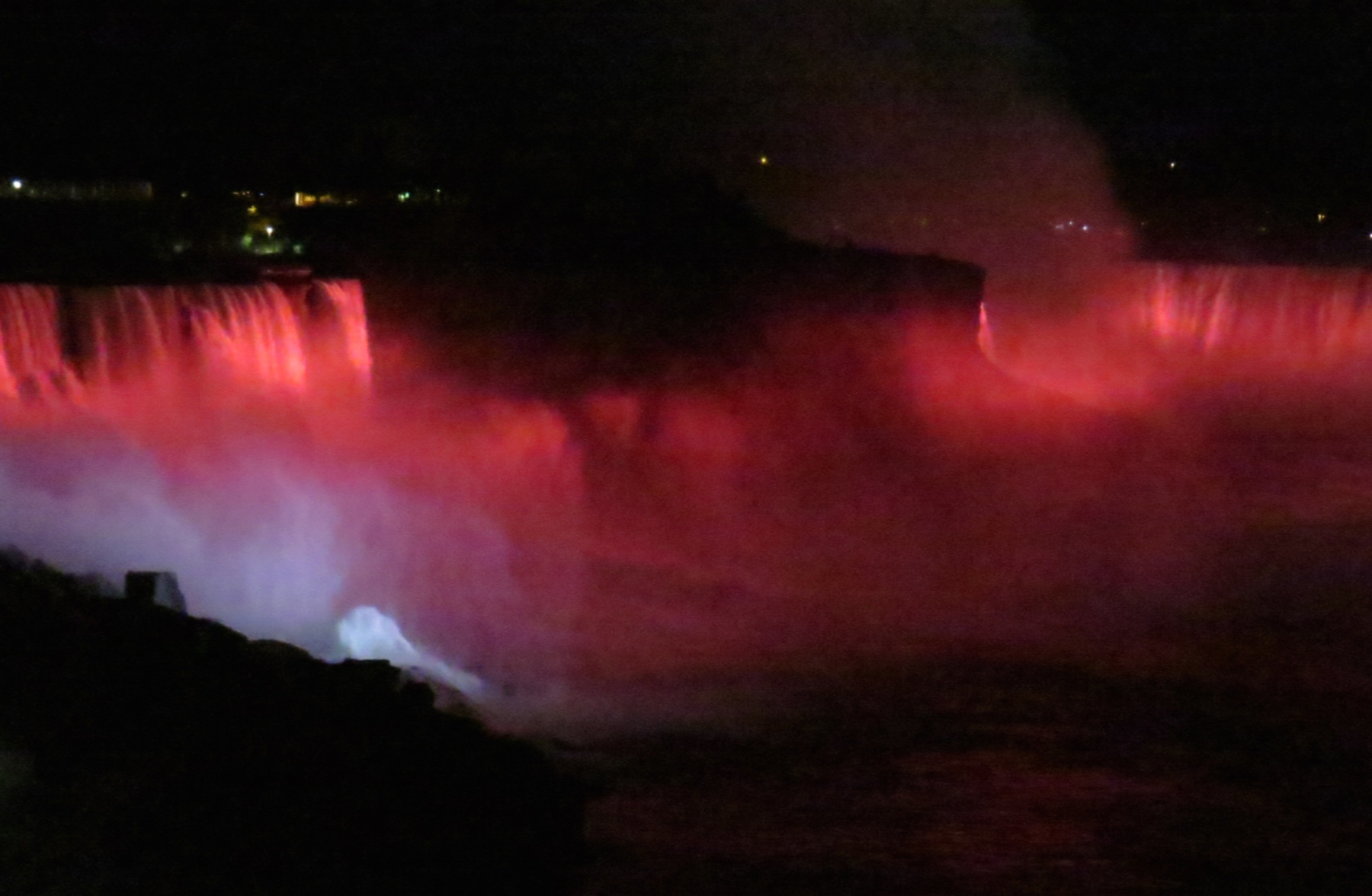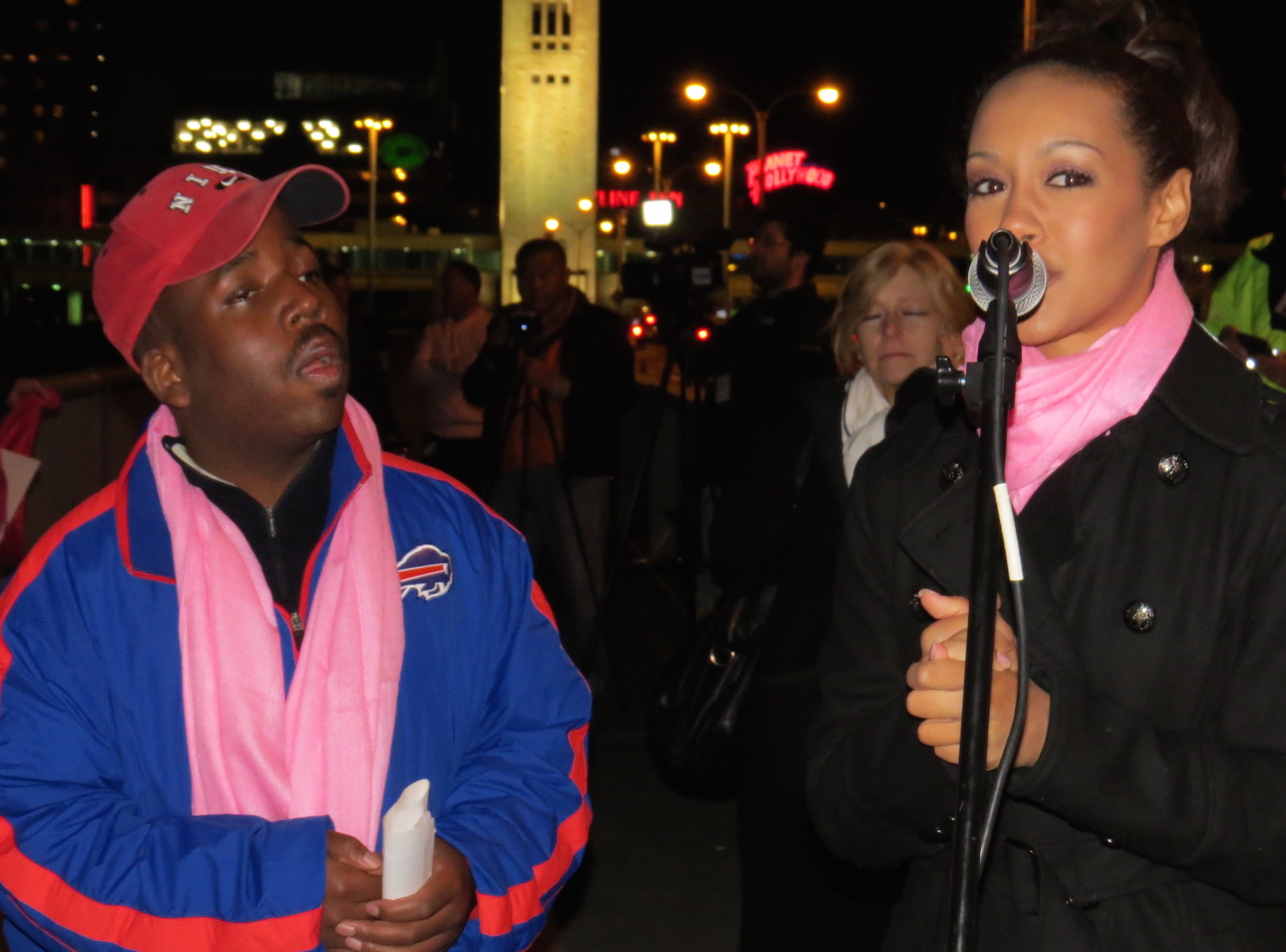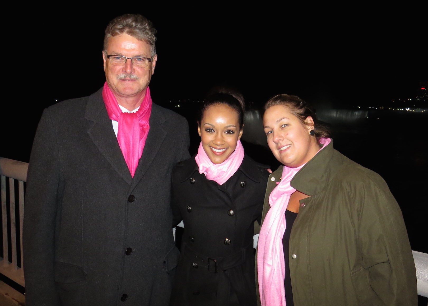 WKBW-TV Channel 7 reporter Desiree Wiley led a countdown to pink illumination across Niagara Falls. She shared that her aunt had been battling breast cancer.