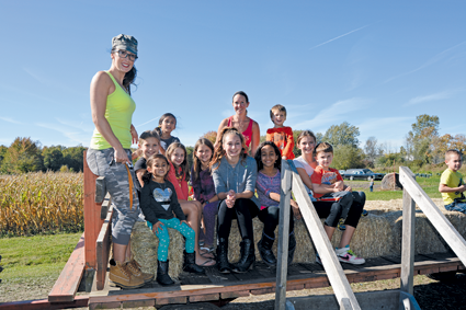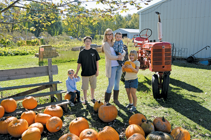 Family and friends pose for a photo among many pumpkins that cover the front lawn of the Wheatfield Pumpkin Farm. From left: Derick Virgilio and Garrett Fisher with Brianna, Trevor and Sophie Virgilio.