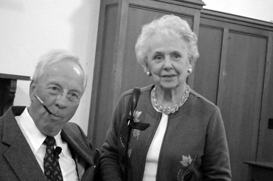 Albert McFadyen, as President Franklin D. Roosevelt, and Shirley Luther, who lived through the Great Depression and World War on the Island, read a fictitious letter from a "12-year-old Shirley Luther," a student at Sidway School, who asked President Roosevelt to remember the forgotten man. She said that her dad had lost his job at Carborundum and that the family had to pay the rent or be evicted. Although the letter was fictitious, Luther said that her family did endure hard times during the Great Depression. (Photo by Alice E. Gerard)
