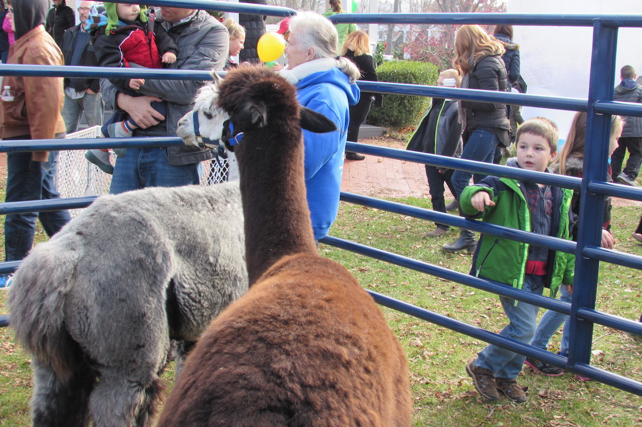 Inside the courtyard, carolers performed. Just down the street, The Brickyard Pub & B.B.Q. welcomed families to a gingerbread house-making course. Over at Hennepin Park, meanwhile, a Shenandoah Acres petting zoo offered llamas, a bunny and a ginormous Humble Bumble.