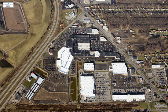 An aerial view of the Fashion Outlets Mall shows expansion and development of business. (Photo courtesy of the Fashion Outlets Niagara Falls)