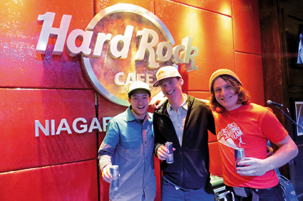 Will Gadd (middle) had lunch Thursday with "Win with Wegmans" contest champion Adam Nawrot of New Jersey, right, and Arthur Eng of Delaware. They are pictured inside the Hard Rock Cafe, Niagara Falls, USA.