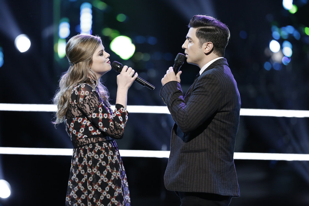 "The Voice": Caity Peters squares off with Joe Vivona in the "Battle Rounds." (NBC photo by Tyler Golden)