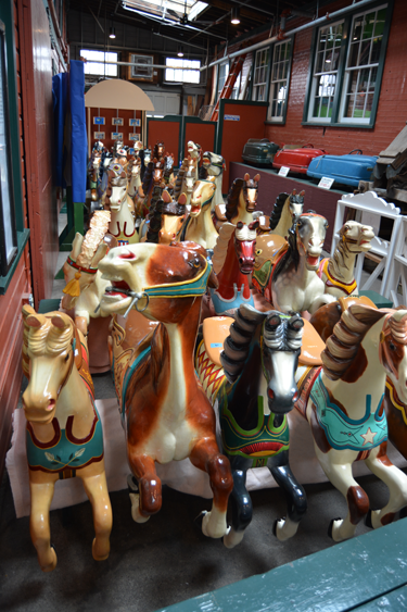 Shown are horses from the disassembled 100-year-old carrousel. (Photo by Lauren Zaepfel)