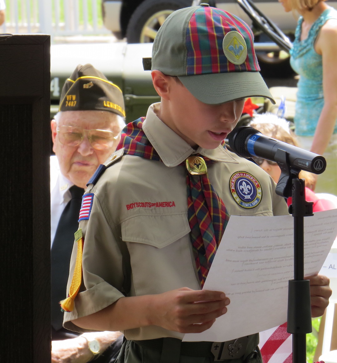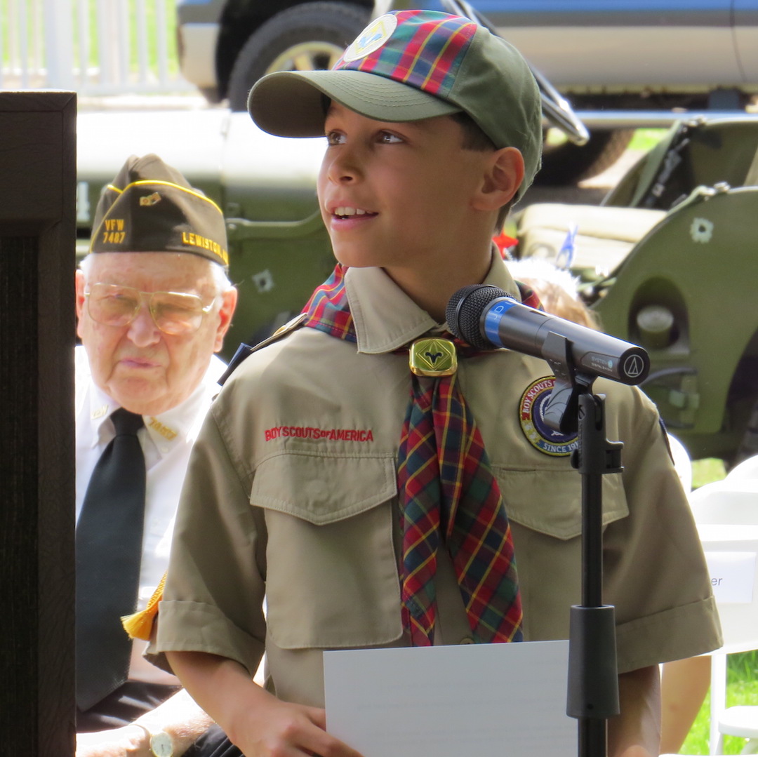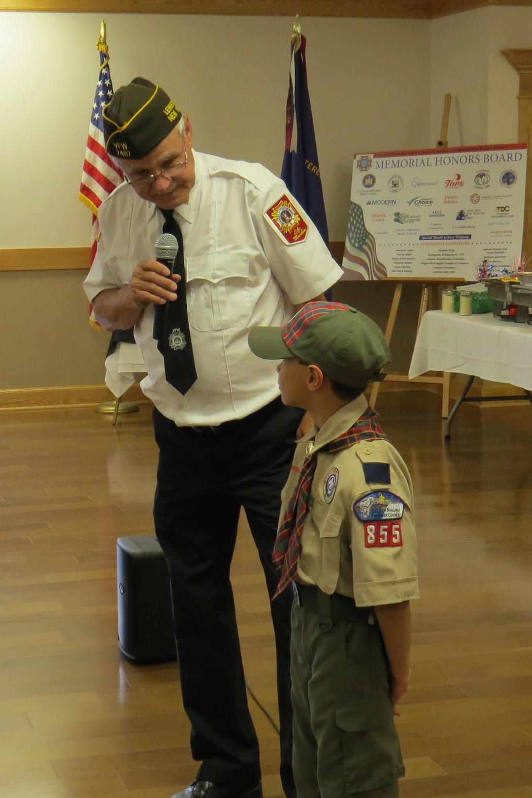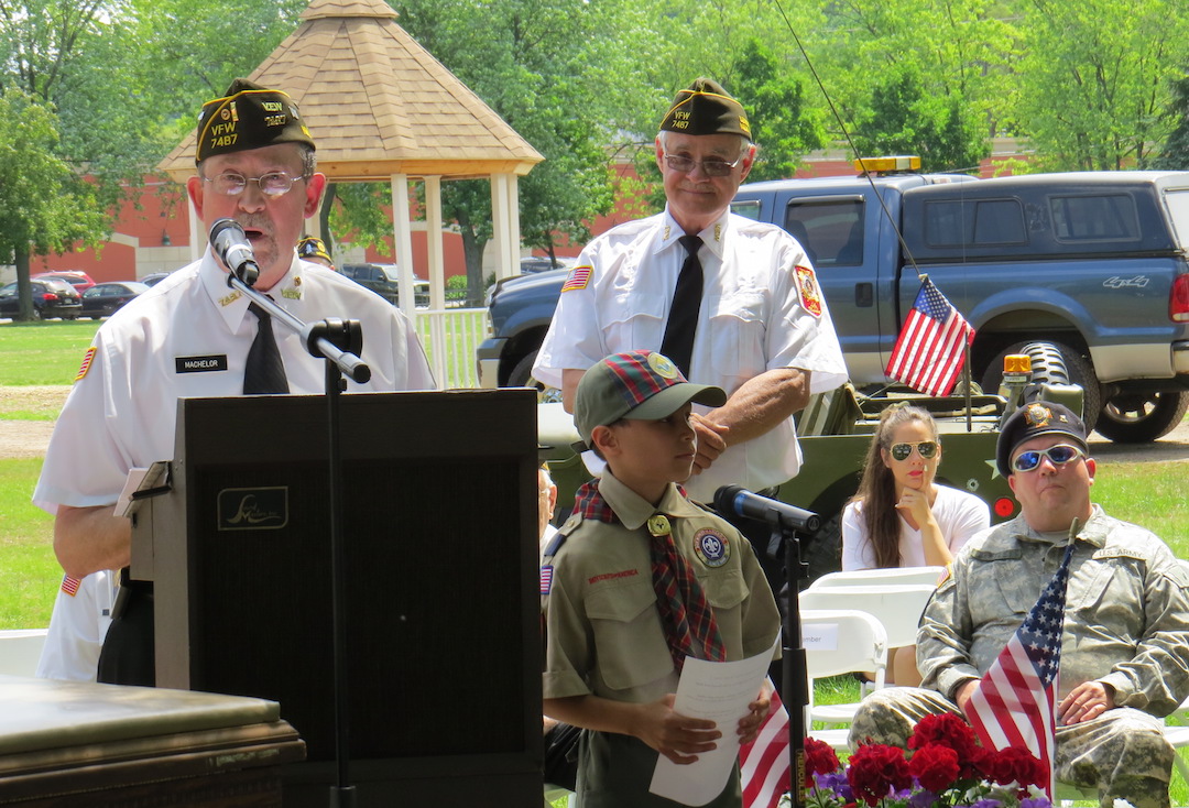 VFW Adjutant Norm Machelor emceed the observance ceremony. Two special guest parade marshals - Col. Brian S. Bowman, wing commander of the 914th Airlift Wing at the Niagara Falls Air Reserve Station, and 8-year-old Simon Zawistowski of Cub Scout Pack 855 - addressed a crowd of hundreds inside Academy Park.
