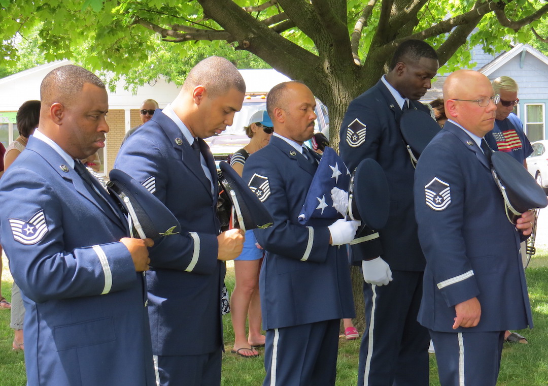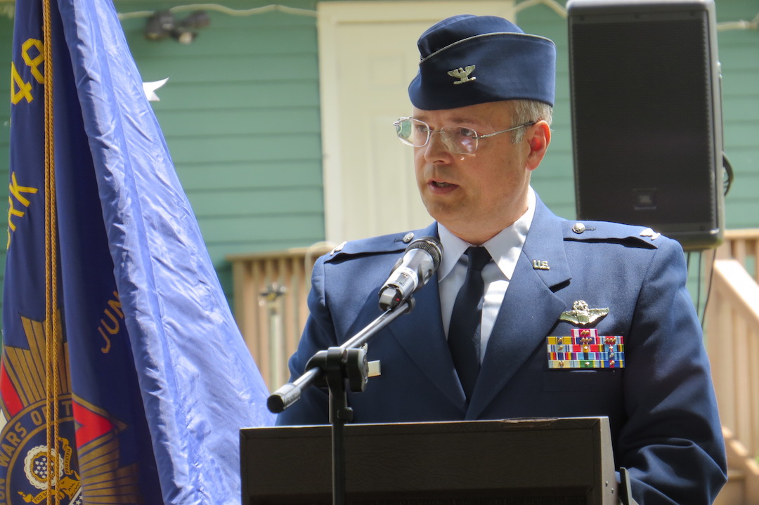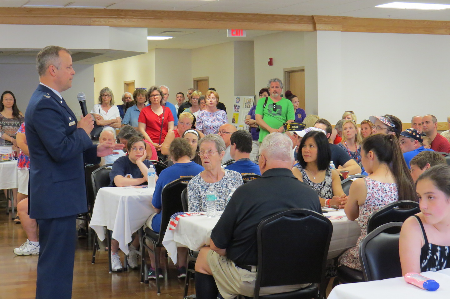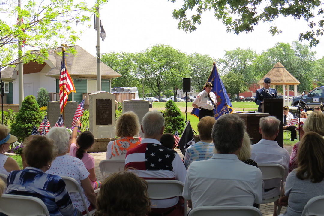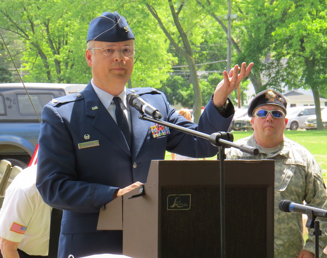 VFW Adjutant Norm Machelor emceed the observance ceremony. Two special guest parade marshals - Col. Brian S. Bowman, wing commander of the 914th Airlift Wing at the Niagara Falls Air Reserve Station, and 8-year-old Simon Zawistowski of Cub Scout Pack 855 - addressed a crowd of hundreds inside Academy Park.