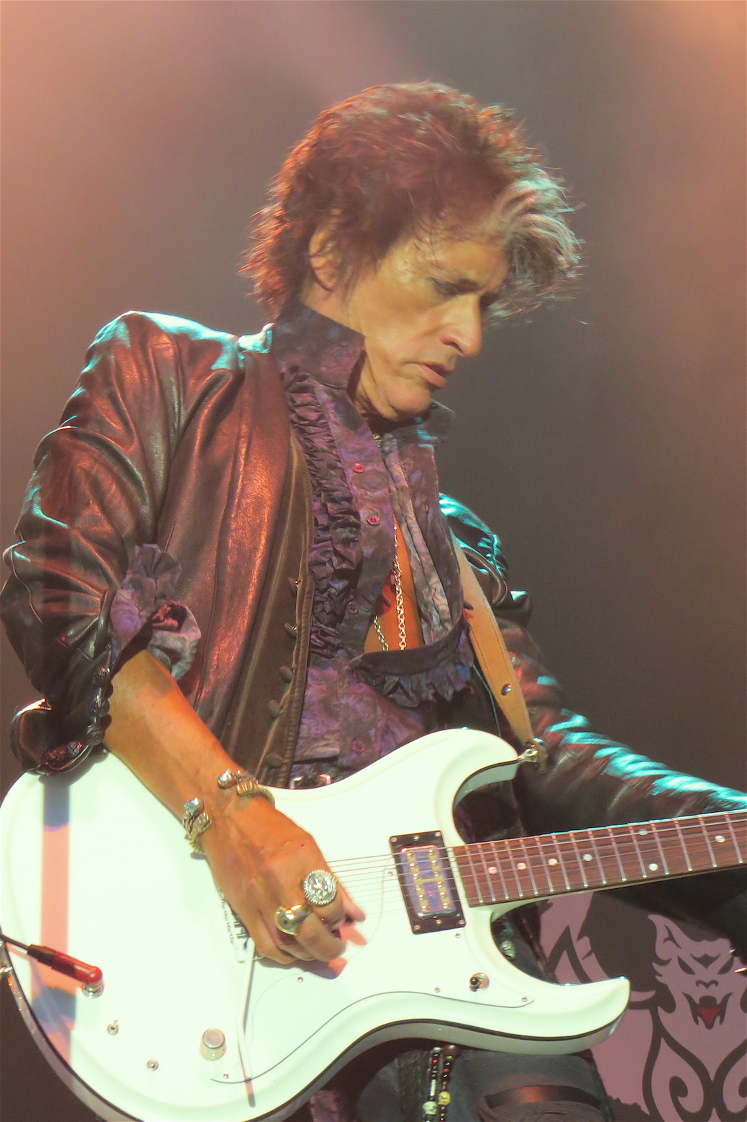 Perry showed why he, too, is a Rock and Roll Hall of Fame inductee, ripping through songs from center stage as Cooper and Depp strutted from side to side. He even performed a solo with a guitar behind his head.