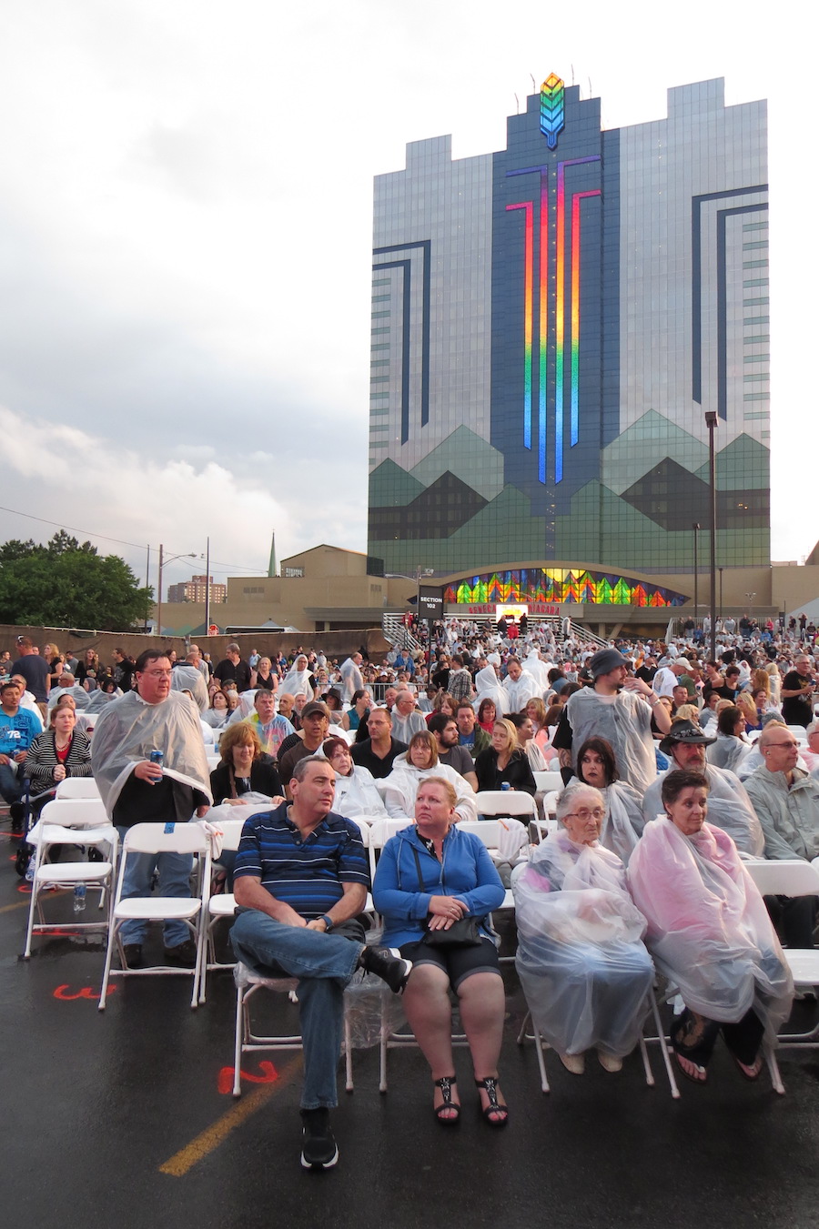 Three rounds of pouring rain delayed the hotel parking lot show one hour. Once the showers stopped at 9 p.m., the Hollywood Vampires poured down about 90 minutes of hit songs. Here - unlike other casino shows, where patrons and whales come and go throughout sets - the soaking-wet, poncho-clad crowd remained until the very end.