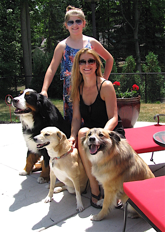 Janine Palmiere-Tocke (seated) and her daughter, Samantha, show off their blended family's pets at their Lewiston home. The dogs, from left, are Wilson, Charmer and Bear. Bear and Charmer were adopted from Heart of Niagara. (Photo by Susan Mikula Campbell)