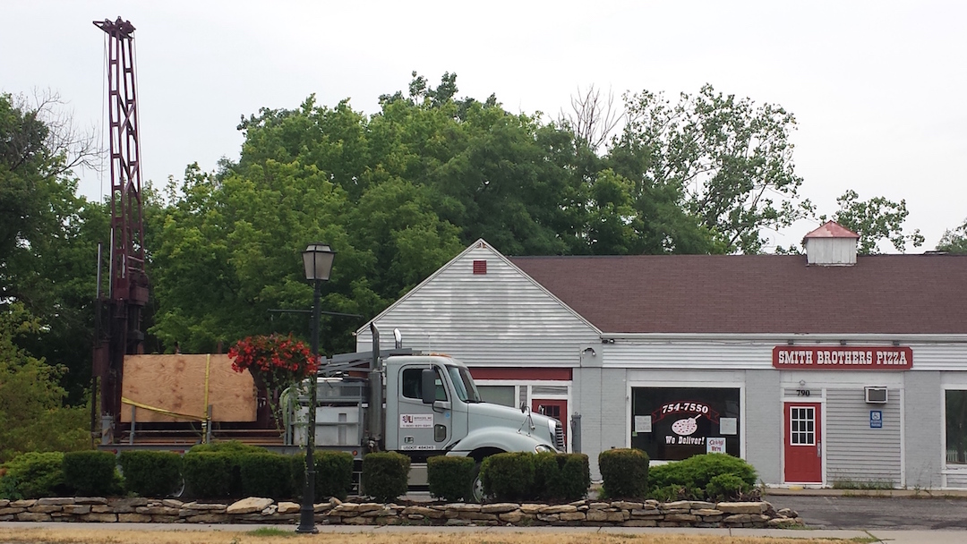Following the July Village Board meeting, Ellicott Development initiated additional geotechnical study at its Center Street property (pictured). On Monday, Paladino said "the majority of the contamination" is located near the former pizzeria unit. His company is making plans to remediate the soil.