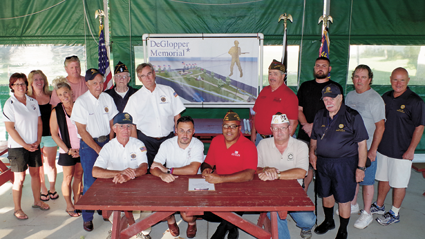 At a meeting in the DeGlopper Post 9249 pavilion Sept. 13, representatives of the post received the deed to the old Exxon Mobil property from the DeGlopper Memorial Expansion Committee.