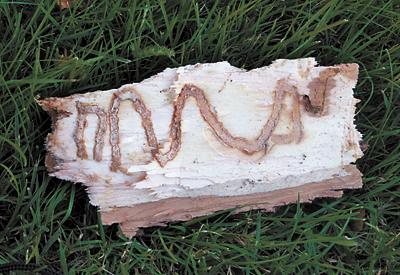 Evidence of emerald ash borer infestation can be seen beneath the bark, as the insect, in its larval stage, eats the tree's underbark, disrupting the tree's ability to move nutrients. In an area where there is a high population of insects, trees can die in two to three years of first being infested.