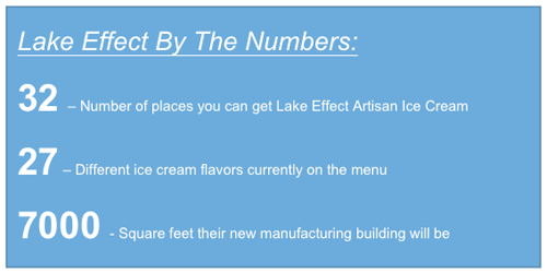 To learn more about Lake Effect Artisan Ice Cream, visit its website at www.lakeeffecticecream.com, "Like" them on Facebook, and/or follow them on Twitter and/or Instagram, as well.