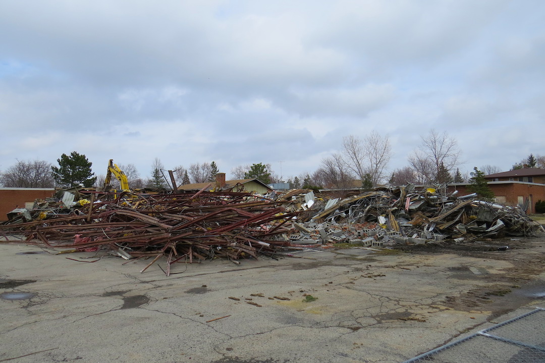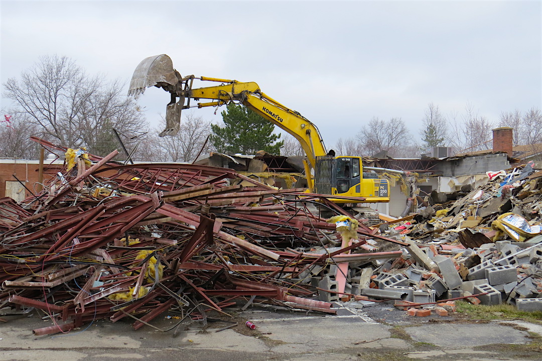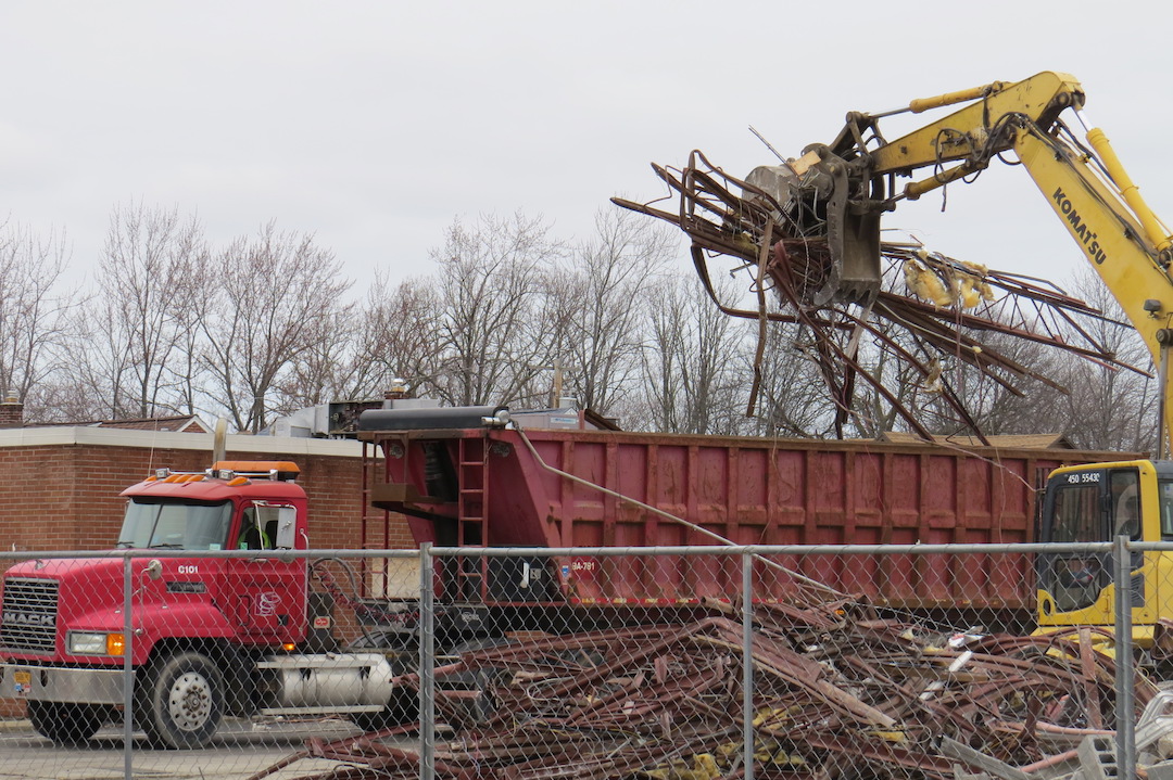 Village of Lewiston Projects Coordinator and Liaison W.E. "Skip" Hauth has been on site daily, and said, "A lot of what's going on right now is taking down the building structure. They're pulling steel and trusses out of the building and stacking it. They're in the process of pulling out the cinder block and the brick walls."