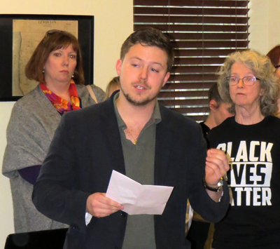 The group's lone speaker was Chris Borgatti, a former Lewiston resident now living in Niagara Falls. He chided President Donald Trump and national labor relations. In regard to Lewiston, he said, "Racism must be condemned at every turn. ... We must stand in solidarity."