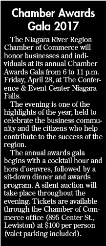 The Niagara River Region Chamber of Commerce will honor businesses and individuals at its annual Chamber Awards Gala from 6-11 p.m. Friday, April 28, at The Conference & Event Center Niagara Falls.