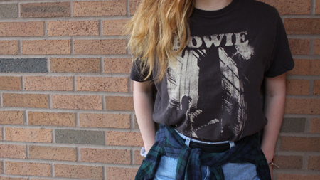 Graphic tees are making a comeback - they are comfortable, yet the "grunginess" of the older artists or sayings found on the shirts provide a unique quality to each individual who chooses to wear them. For instance, this David Bowie tee can easily make others jealous, wishing they were able to snag a shirt just like that for themselves.