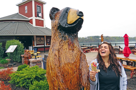Pictured, from left, along with the famous Silo bears outside the caboose, are Alan Hastings, Stacey Sheehan and Lexi Alfiere (also shown below).