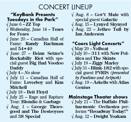 "It definitely is a very big challenge," she said, noting area casinos are booking more and better acts, Darien Lake (working with Live Nation) has poached several former Artpark headliners, and even the Albright-Knox Art Gallery has an A-list outdoor show this summer, with a triple bill featuring Tonic, Collective Soul and Our Lady Peace.