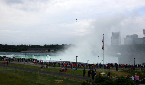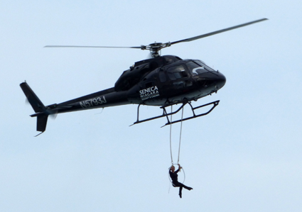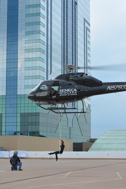 Erendira took flight from the roof of the Seneca Niagara Resort & Casino parking ramp to Terrapin Point in Goat Island at Niagara Falls State Park. She began her act about 8:40 a.m. Erendira was filmed by media outlets from around the globe.