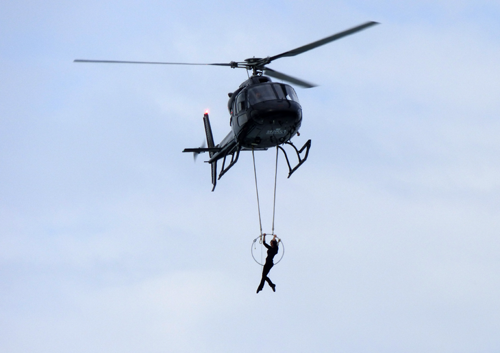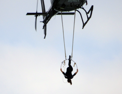 Nik said it was "absolutely amazing" to be up in the helicopter watching his wife dangle above the falls. He said their Christian faith enables them to take flight without fear of failure - or death.