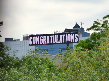 A sign of congratulations outside of the Seneca Niagara Resort & Casino.