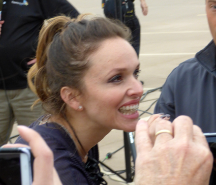 Erendira shows off the special mouthpiece she used in her flight over Niagara Falls.