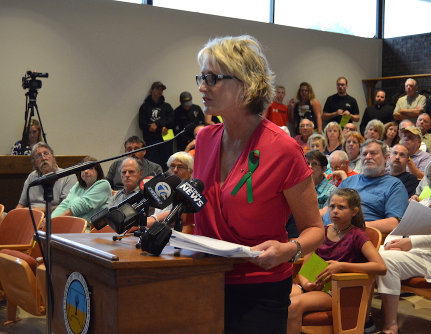 Niagara County Legislator Kathryn Lance speaks in favor of a sidewalk on Krueger Road.