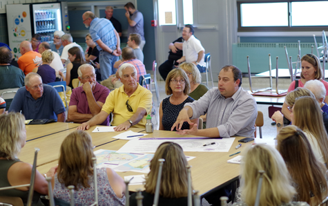 Those who attended the meeting in the Grand Viking Theater of Grand Island High School broke up into four groups of 30, led by a moderator from Clark Patterson Lee, to give their input on the town's past, present and future.