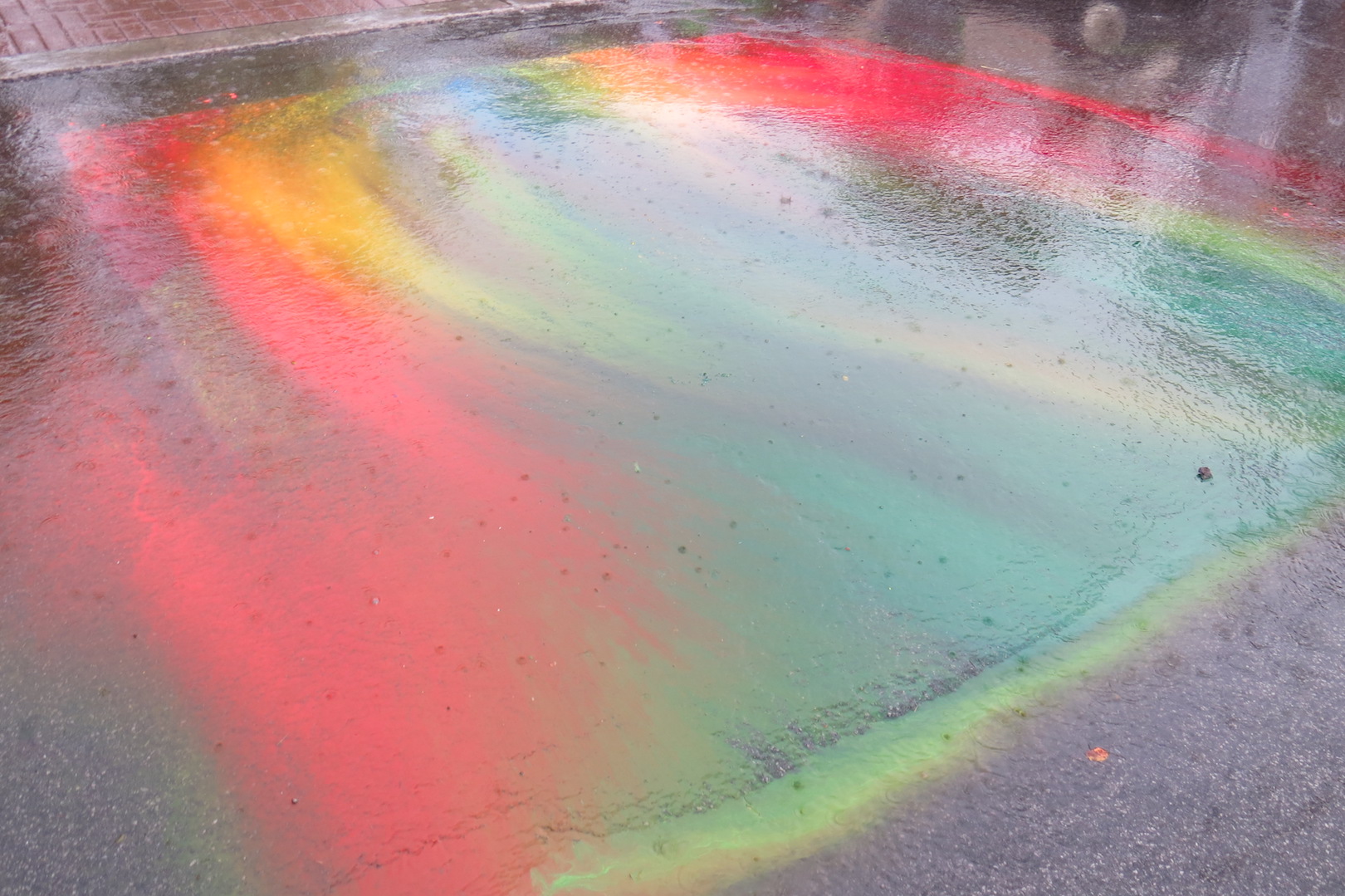 As the voting totals were announced, the chalk began to pool into colorful streams and run down Center Street. (See below.)