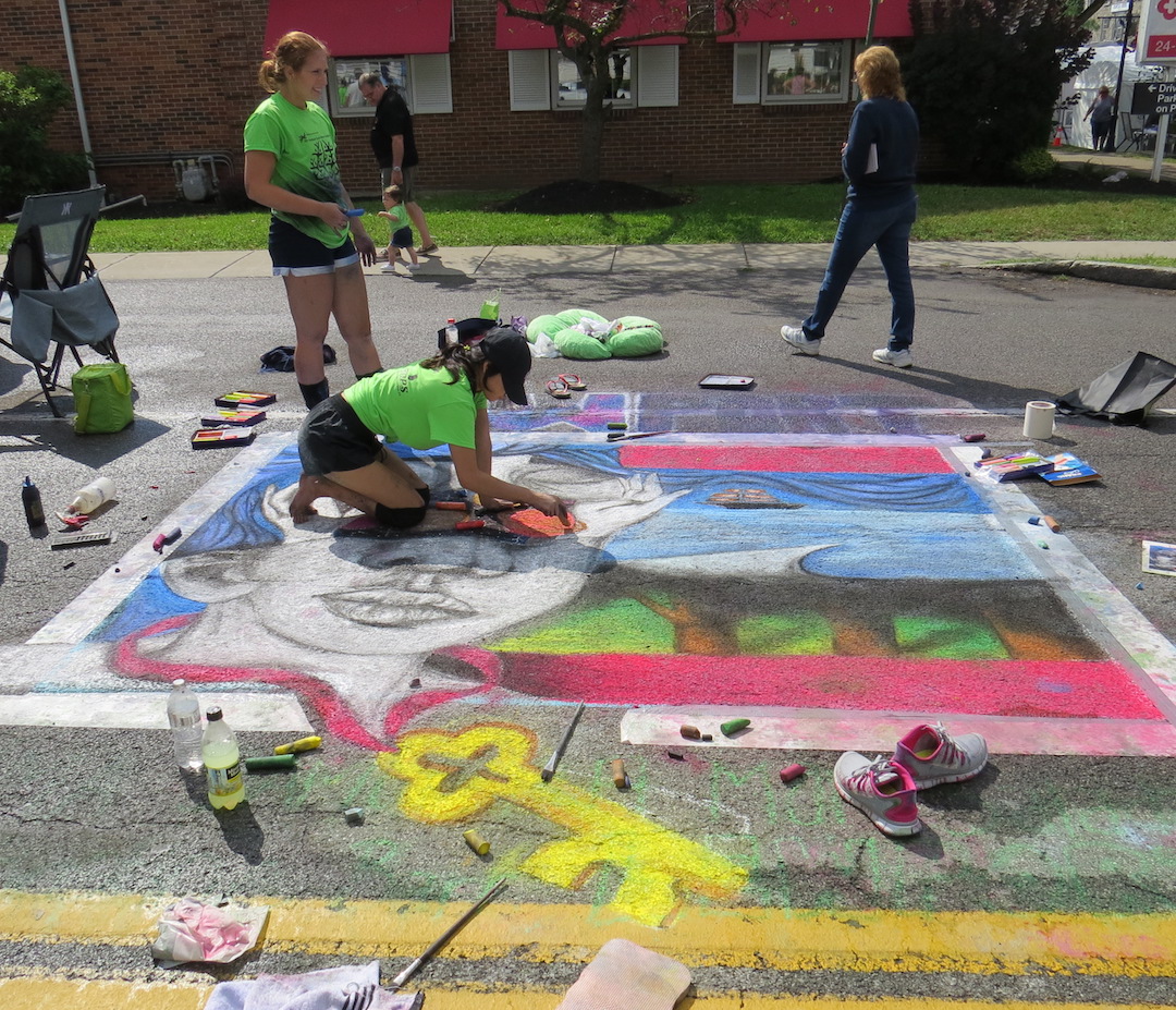 One downpour near the 3 p.m. hour threatened the Chalk Walk Competition, but quick-thinking high school teams and coaches were able to protect the student art and preserve it for judging.