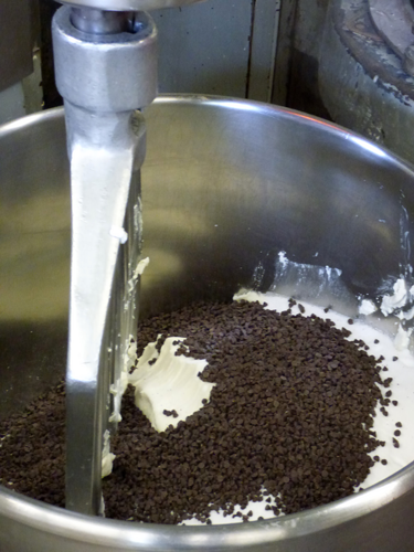 As Tom and Karen stood guard over the mixing bin, where cheese and chocolate chips formed a gloriously delicious union, he explained, "People love cannoli. They really do.