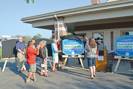 Family and loved ones unveil the park sign dedicated to John Nielsen Sr.
