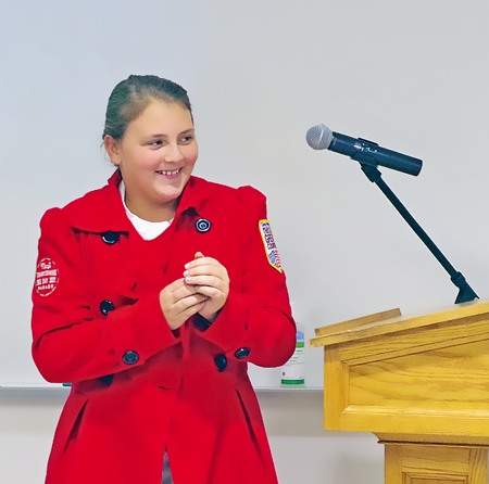 During the "Good News" portion of the meeting at Grand Island High School, the trustees recognized the 11-year-old sixth-grader from Veronica E. Connor Middle School for her performance in the world famous parade.
