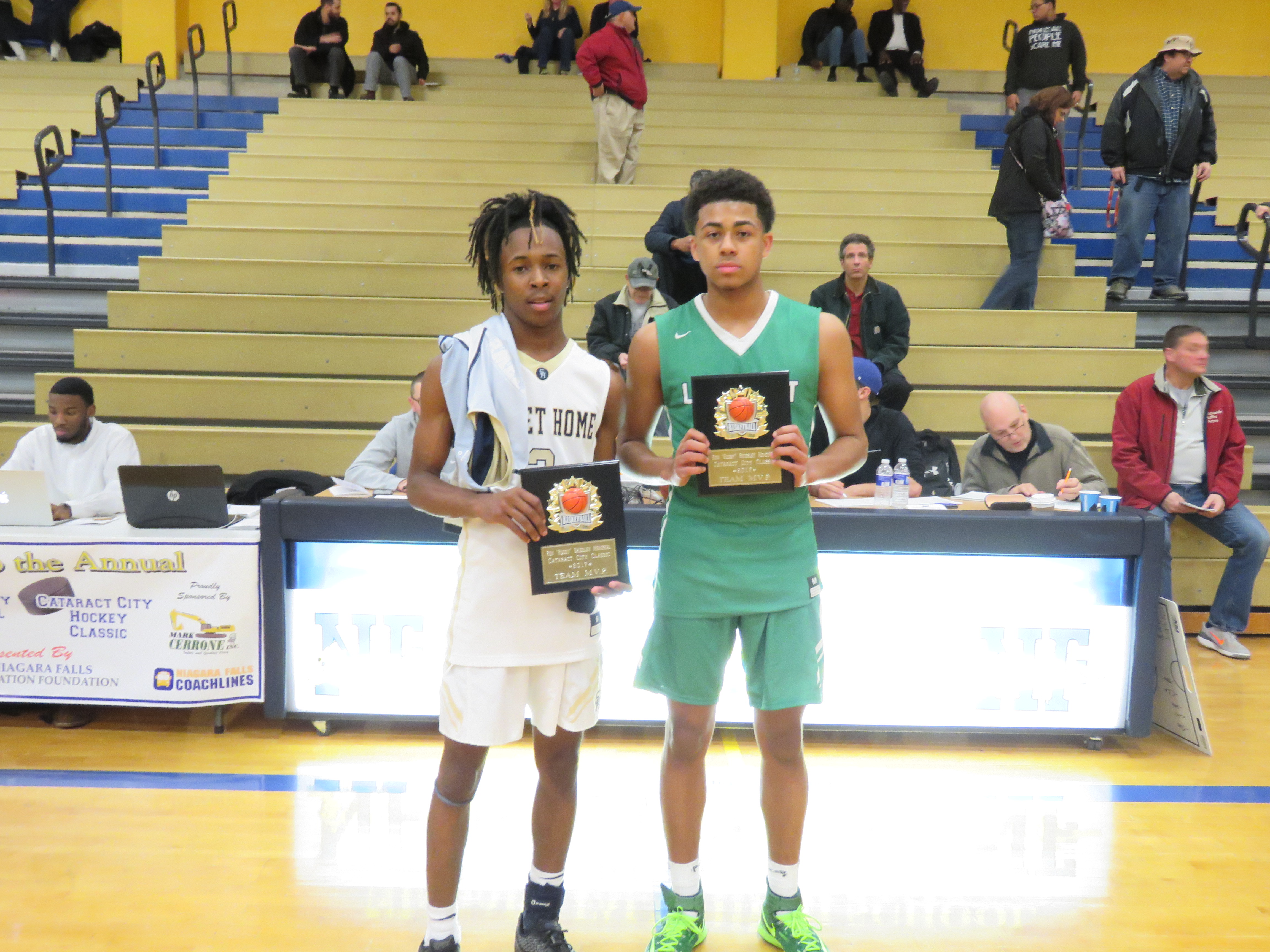 Left to right: Game MVPs Stephon Trueheart of Sweet Home, and Trenton Scott of Lewiston-Porter (Photo by David Yarger)