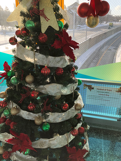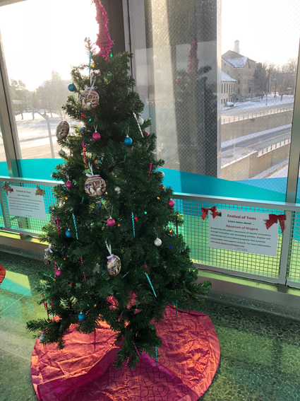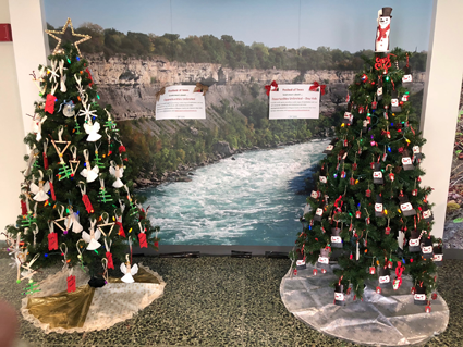Area nonprofit groups decorated the artificial trees to represent each one's respective mission. The trees are adorned with LED lights courtesy of NYPA. Participants include the American Cancer Society/Relay For Life Greater Niagara, American Diabetes Association, Aquarium of Niagara, Catholic Charities, Family & Children's Service of Niagara, New York State Park, Niagara Community Action Program, Niagara Falls Boys & Girls Club, Opportunities Unlimited, People Inc., SPCA and United Way of Greater Niagara.